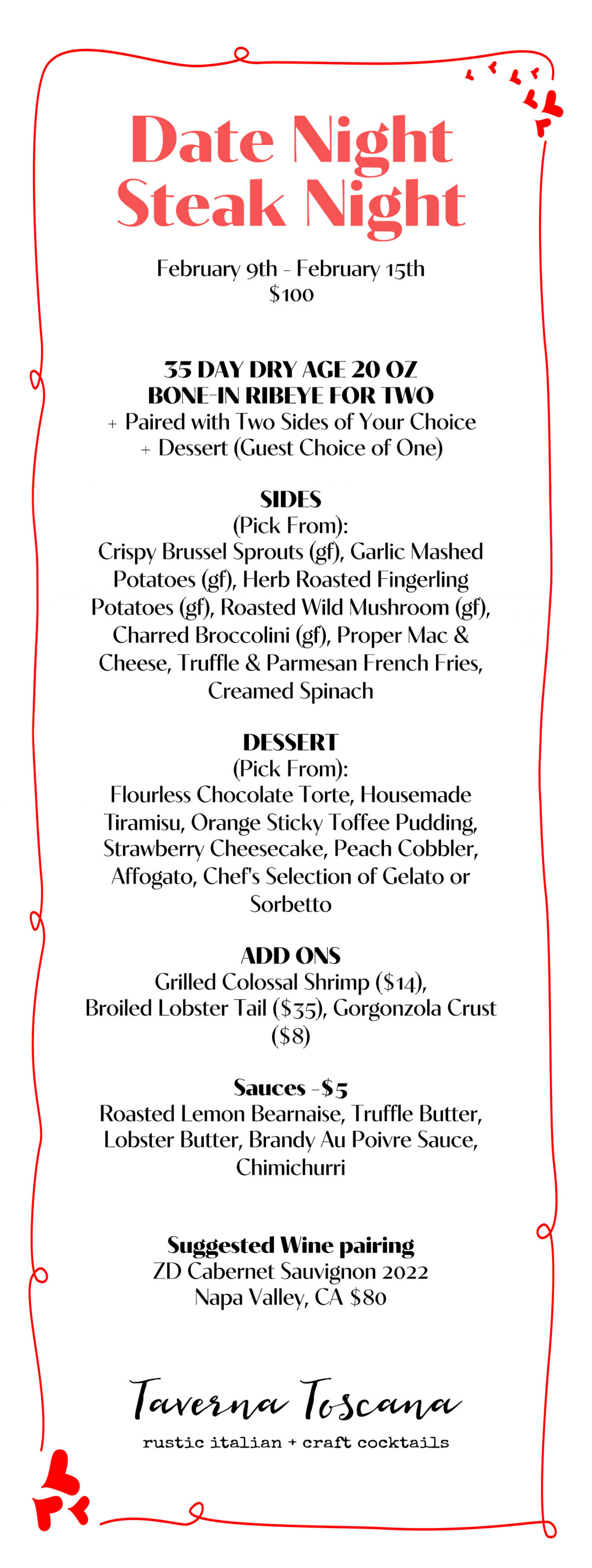 We've got your Valentine's plans covered here at Taverna Toscana ❤️